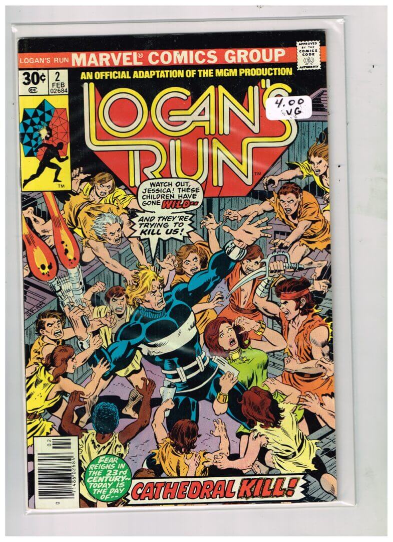 “Cathedral Kill”. Part 2 of 5. Story by David Kraft(from the screenplay by David Zelag Goodman which was based on the novel by George Clayton Johnson and William F. Nolan). Pencils by George Perez. Inks by Klaus Janson. Logan tracks down Jessica and asks to learn the secrets of Sanctuary. Jessica’s associates however, don’t believe Logan is sincere. So when Logan is called to track a runner, Jessica accompanies him and convinces him to let the runner live. A decision that will come back to haunt them both.